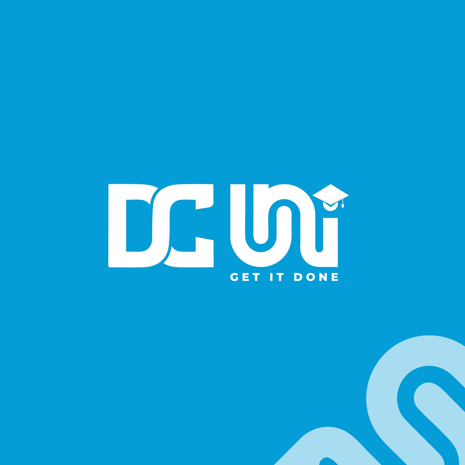 The logo for DC Uni is designed with a creative and modern concept, combining the elements of a graduation cap and a pathway, symbolizing the academy as the guiding road to success for its students.
